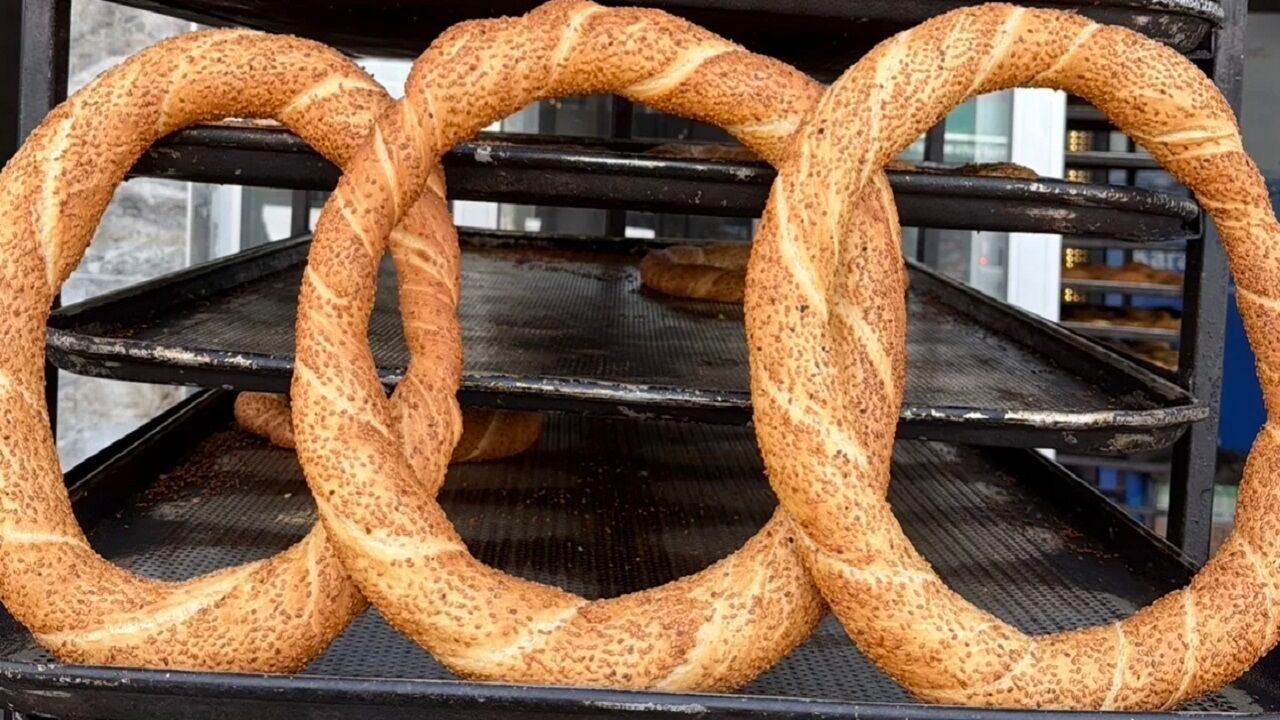 Yaklaşık 270 gram ağırlığında hazırlanan simitler, boyutlarıyla dikkat çekerken, işletmenin önünde zaman zaman yoğunluk oluşuyor.