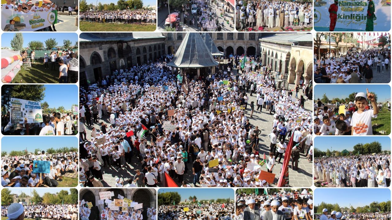 Merkez Sur İlçesi tarihi Ulu Camiinde toplanan binlerce çocuk, gökyüzüne bıraktıkları balonlarının ardından tekbir ve sloganlar eşliğinde final etkinliğinin yapılacağı Kurşunlu Camii yerleşkesine doğru yürüyüşe geçti.