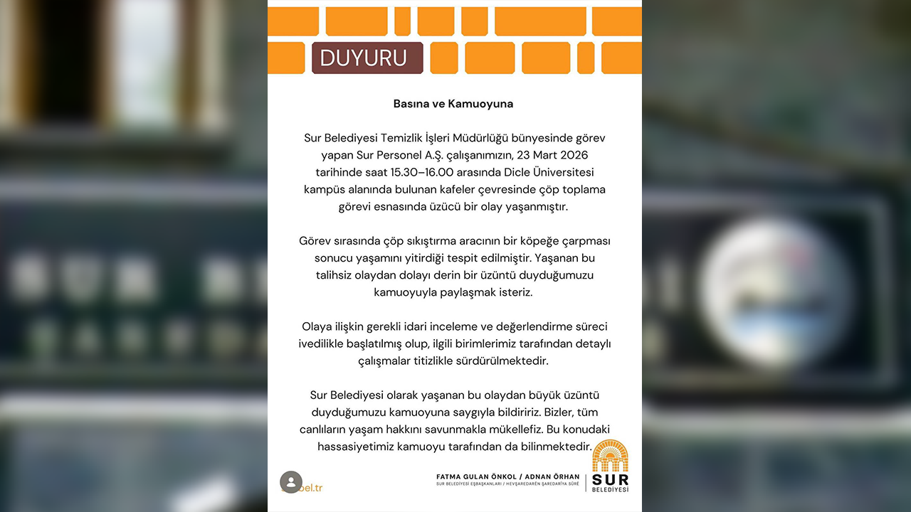 Dicle Üniversitesi kampüsünde bir çöp aracının çarptığı köpeğin ölmesi üzerine yapılan açıklama kamuoyuna duyurulurken, Diyarbakır’daki kronikleşen sorunlar yeniden gündeme taşındı.