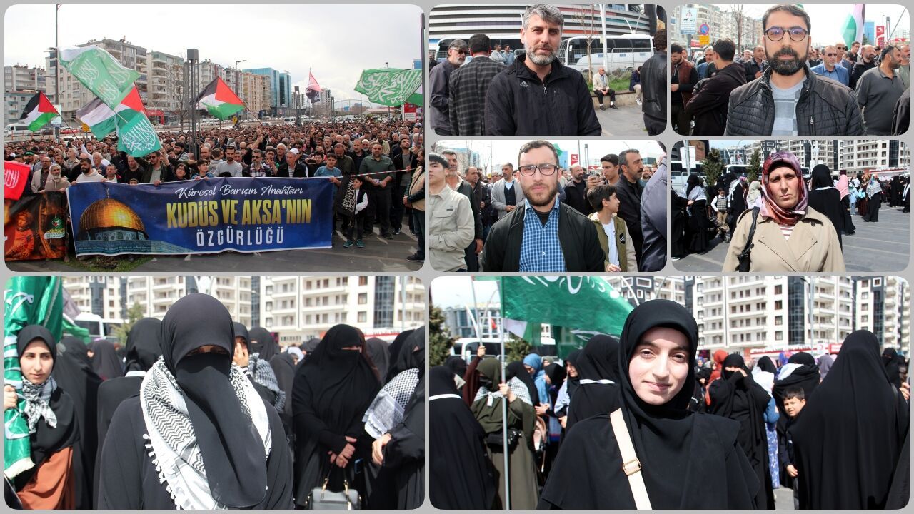 Peygamber Sevdalıları Vakfı öncülüğünde Diyarbakır’da bir araya gelen binlerce kişi, işgal rejiminin Filistinli esirlere yönelik idam kararı ve Mescid-i Aksa’da namaz kılınmasına getirilen engellemeleri protesto etti.