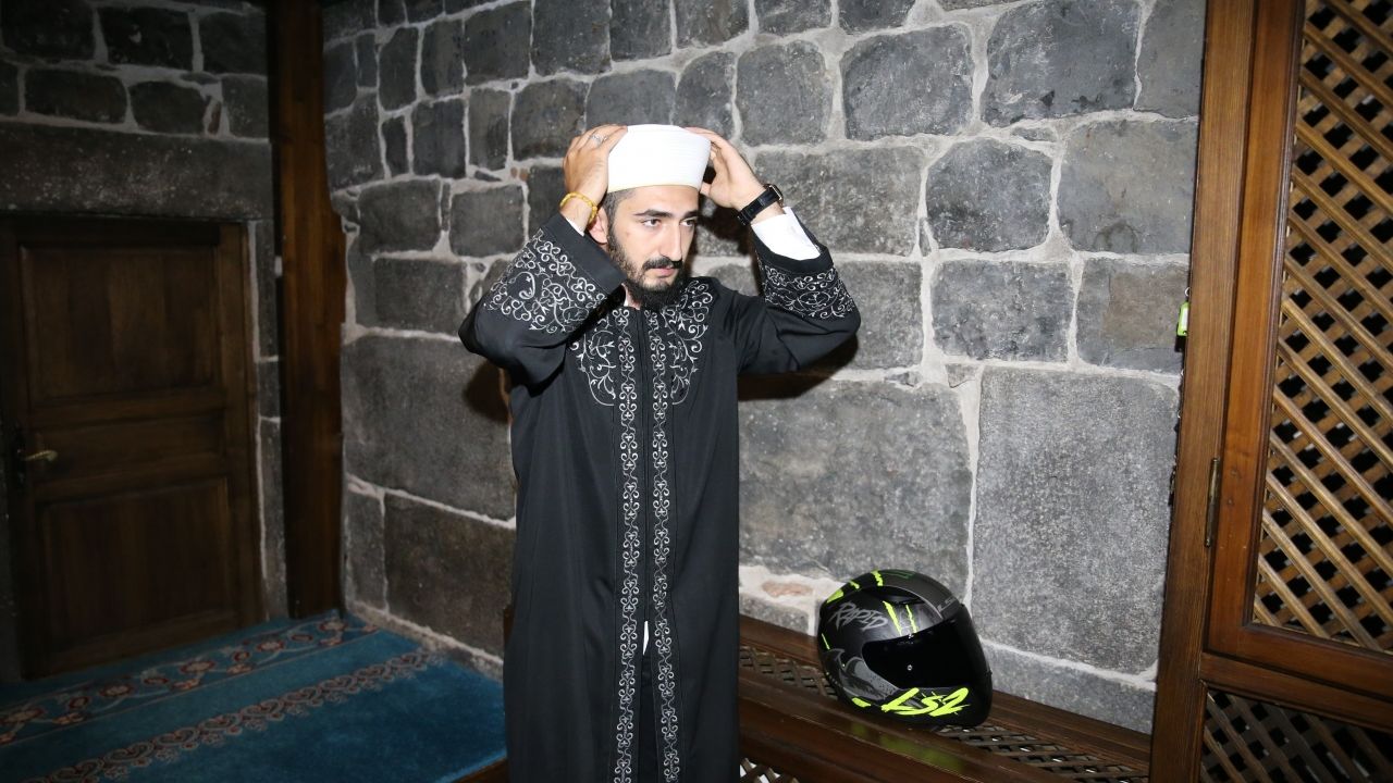 Merkez Sur ilçesinde İslam'ın 5. Harem-i Şerif'i olarak kabul edilen tarihi Ulu Cami'ye 2 yıl önce kadrolu müezzin-kayyım olarak atanan evli ve bir çocuk babası 27 yaşındaki Polat, çocukluk merakı motosiklet tutkusundan vazgeçmedi.