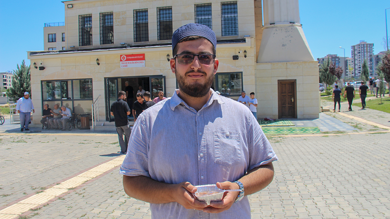 "Bu mahallede ikamet ediyorum. Cami cemaatindenim. Vakit ve Cuma namazlarında bu camiye geliyorum. Allah razı olsun hocamız, memur anlayışından ayrı bir hizmet anlayışına girdi. Kışın çorba ikramı, yazın da soğuk içecek, ayran, simit, çay ikramları yapıyor. Camiye teşvik için böyle ikramlar yapıyor. Bu vesile ile bugünde aşure dağıtıyor."