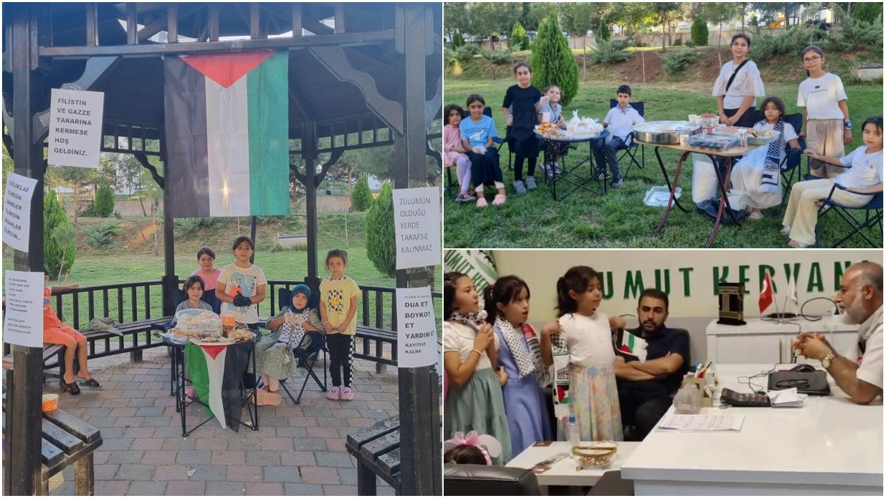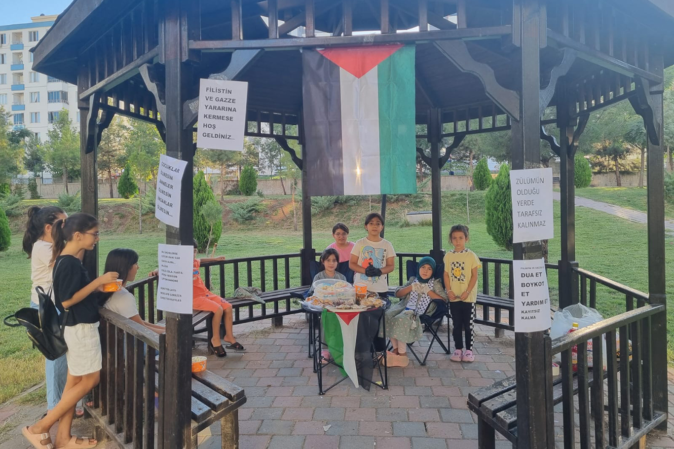Satıştan elde ettikleri geliri Gazze'deki ihtiyaç sahiplerine ulaştırılmak üzere Diyarbakır Umut Kervanı'na teslim eden çocuklar, çevredekilerin takdirini topladı.