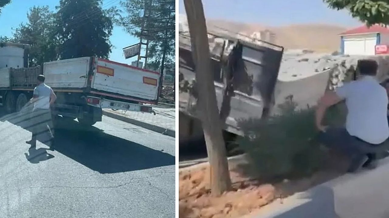 Edinilen bilgilere göre, parke taşı yüklü bir tır, seyir halindeyken dorsesi bilinmeyen bir nedenle çöktü. Dorsenin çökmesiyle birlikte tonlarca parke taşı yola savruldu.