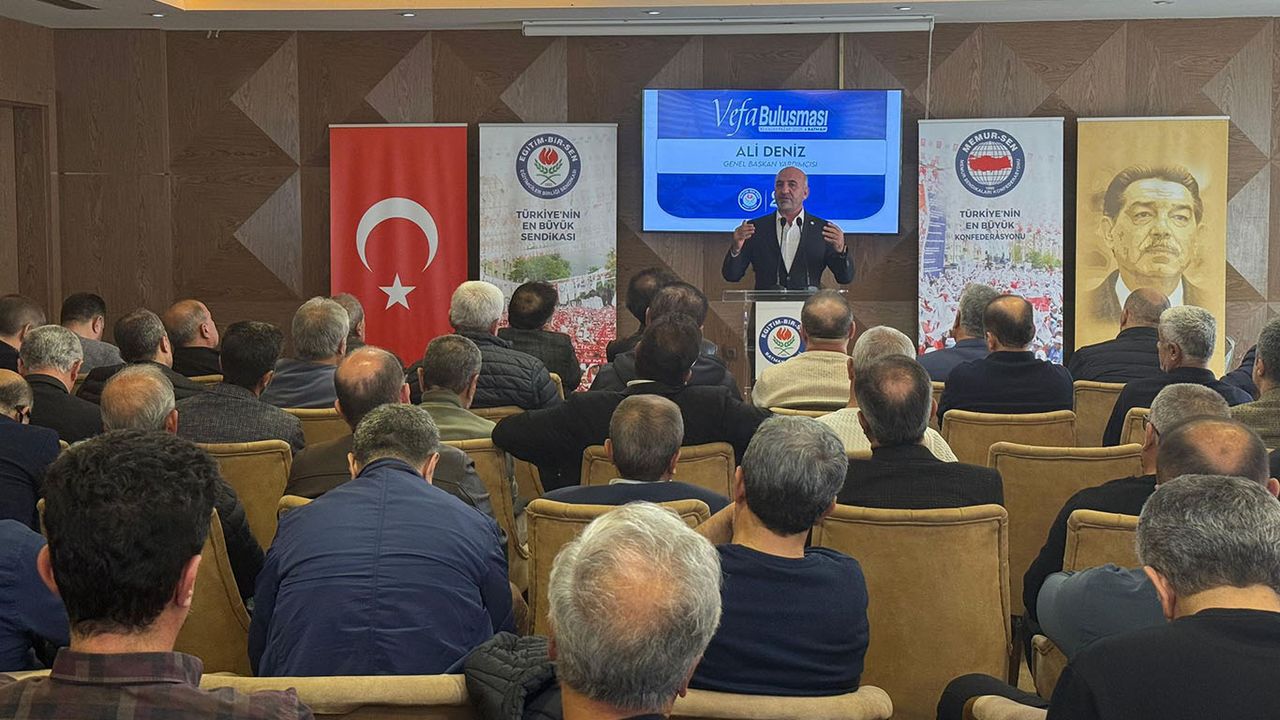 Kurucu Genel Başkan Mehmet Akif İnan’ın “Vefa imandandır” ve “Emek insanın en onurlu yoludur” sözlerini hatırlatan Önlü, bu anlayışın sendikal mücadelenin temel taşlarını oluşturduğunu belirtti.