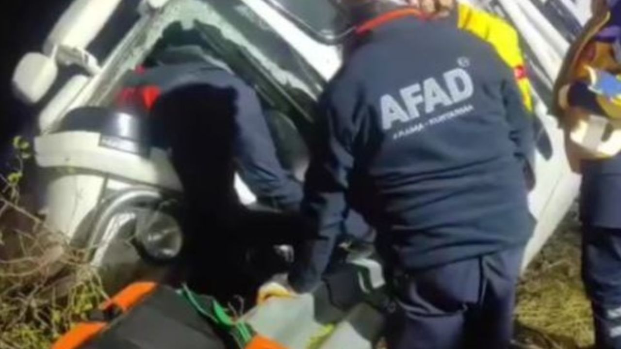 Araçta sıkışan sürücü, AFAD ekiplerinin çalışmasıyla bulunduğu yerden çıkarıldı.