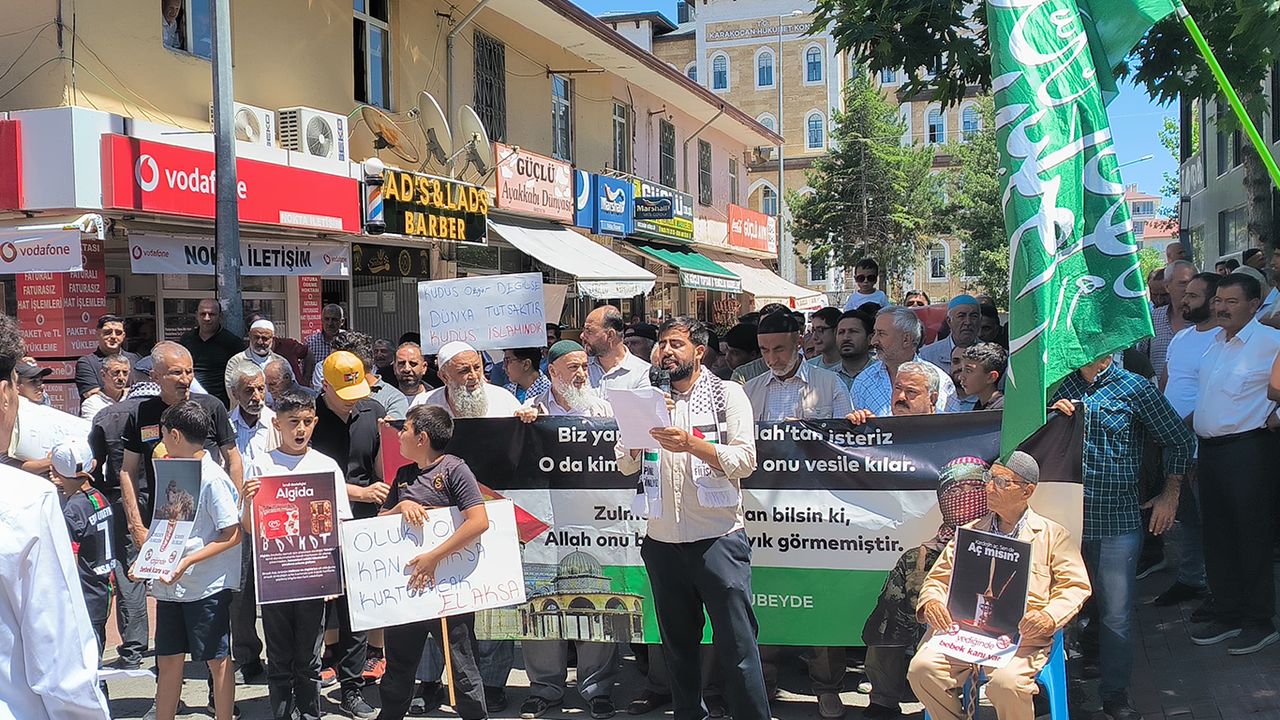 Cuma namazının ardından Merkez Camii önünde toplanan vatandaşlar, siyonist rejimin Gazze’de gerçekleştirdiği katliamları kınadı ve Filistin halkının haklı direnişine destek verdi.