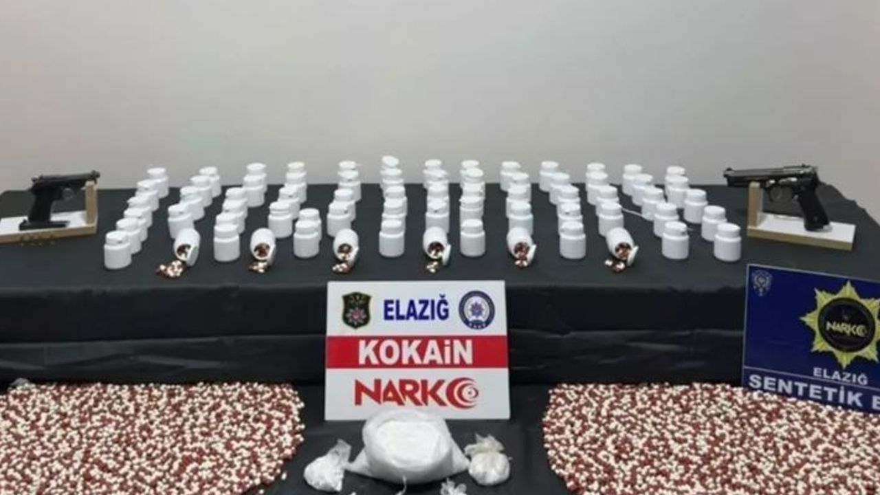Yapılan aramalarda 6 parça halinde toplam 802 gram kokain, 3 bin 873 adet sentetik ecza, 2 ruhsatsız tabanca ve 4 fişek ele geçirildi.