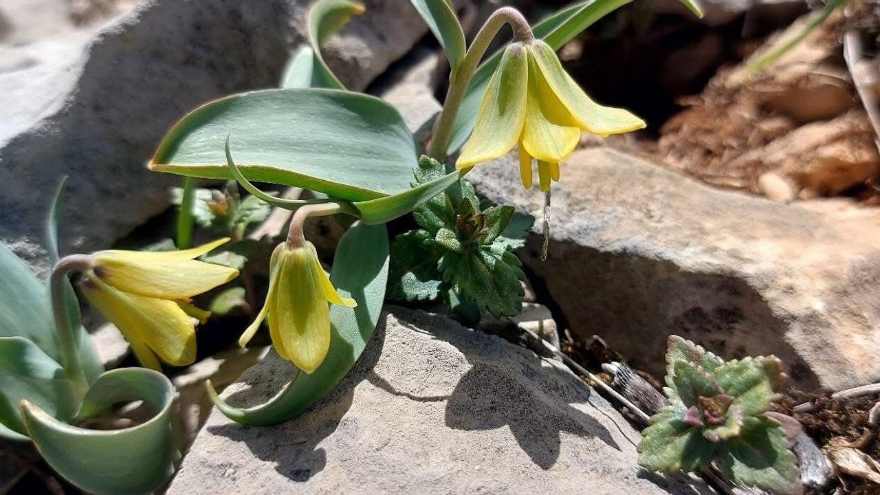 Amatör Dağcılar tarafından görüntülenen sarı ters laleler, nesli azaldığı için koruma altında tutuluyor. İlk defa bu yıl sarı ters laleler gördüklerini dile getiren dağcılar, o anları cep telefonu ile görüntüledi.