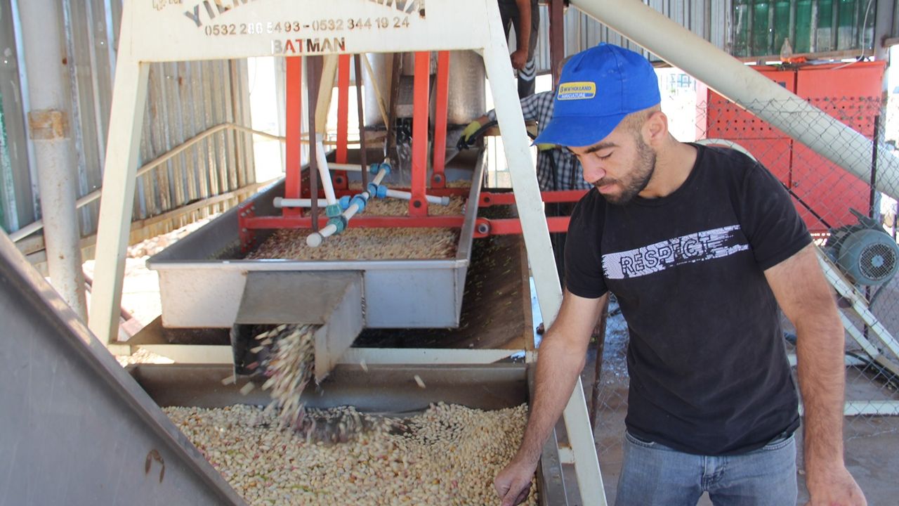 Batman merkeze bağlı Binatlı Köyünde çiftçilikle uğraşan Muhammed Sevim, aynı zamanda köydeki fıstık değirmeninin de sahibi. Yörede yetişen fıstıklar bu değirmende işlenerek kabuğundan ayrılıyor, dolu ve boş taneler ayrıştırılıyor.