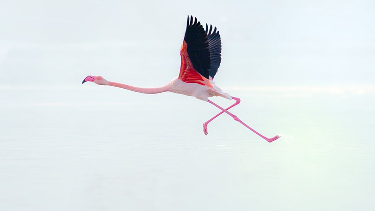 Çınar’a bağlı Bozçalı Mahallesi yakınlarında bulunan gölette mola veren flamingolar, bir süre dinlenip beslendikten sonra göç yollarına devam etti.