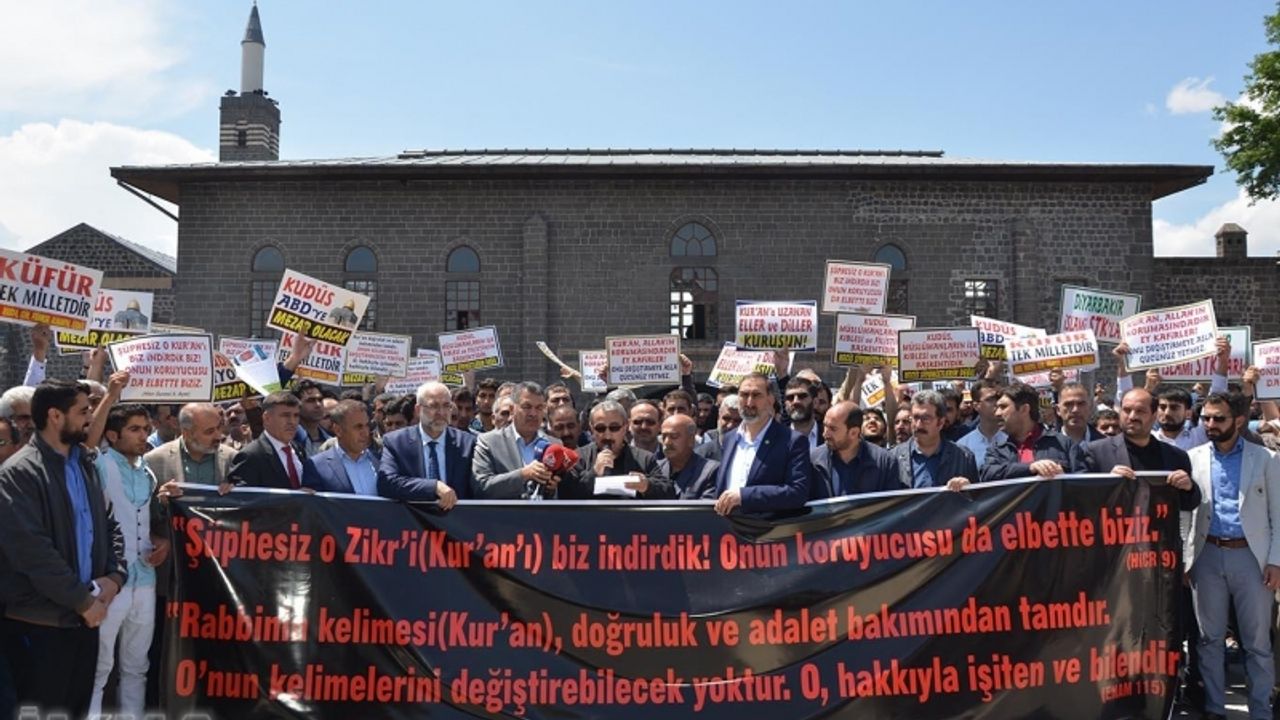 Fransa eski Cumhurbaşkanı Nicolas Sarkozy'nin de aralarında bulunduğu 300 Fransız'ın, Kur'an-ı Kerim'deki bazı ayetlerin çıkarılması yönündeki küstah bildirisi Diyarbakır'da tel'in edildi