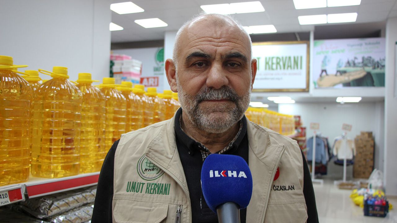 "Daha önceden Gaziantep'te ihtiyaç sahiplerine koliler götürüyorduk. Fakat şimdi yeni bir sisteme geçtik. Sistemimizde sosyal market adı altında faaliyetlerimizi yürüteceğiz. Sosyal market ne demek? Sosyal market bildiğiniz market türü bir çalışma. Daha önce gıda kolisi götürdüğümüz ailelere şimdi kart dağıtacağız. Aileler kendi kartlarını alıp sosyal marketimize gelecek. Burada kendi ihtiyaçlarını kendi elleriyle temin edecekler."