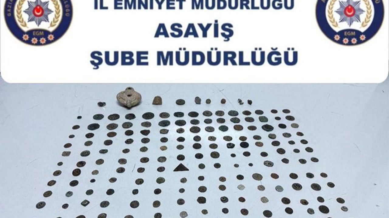 Gaziantep'te bir araçta yapılan aramada, Roma ve Bizans dönemine ait 230 parça tarihi eser ele geçirildi.