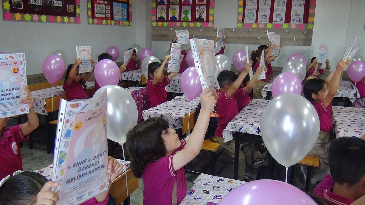 İlk defa karne alan öğrenciler ise çok mutlu olduklarını tatilde öğretmenlerini ve arkadaşlarını özleyeceklerini kaydetti.