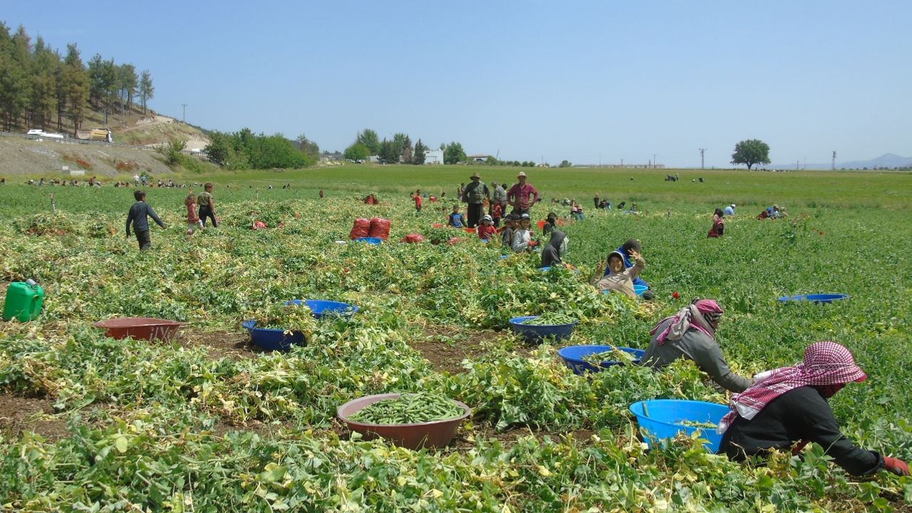 İslahiye Kaymakamı Mehmet Soylu, Ağabey Mahallesi'nde hasat yapan işçileri ziyaret ederek onlarla bezelye topladı.