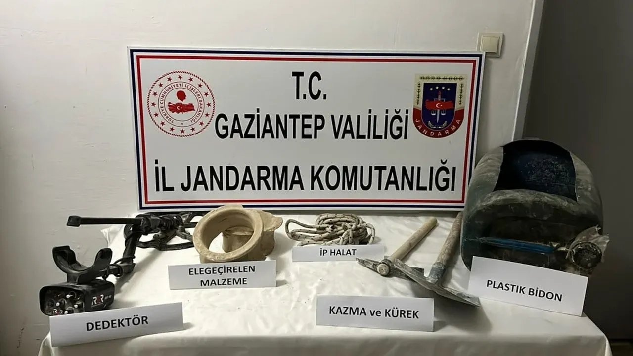 Operasyonda A.K ve K.K izinsiz kazı yaparken yakalandı. Alanda yapılan aramada, dedektör ve kazı malzemesi ele geçirildi.