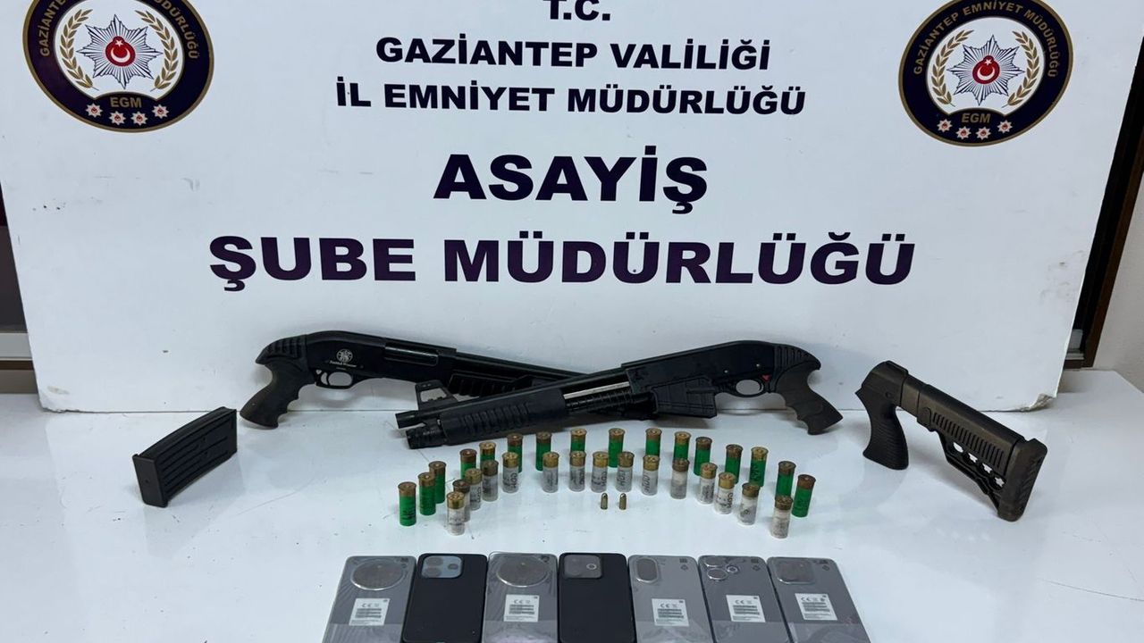 Gaziantep'te düzenlenen operasyon neticesinde, 2 adet ruhsatsız pompalı tüfek, 33 adet fişek ve 7 adet gümrük kaçağı cep telefonu ele geçirildi.