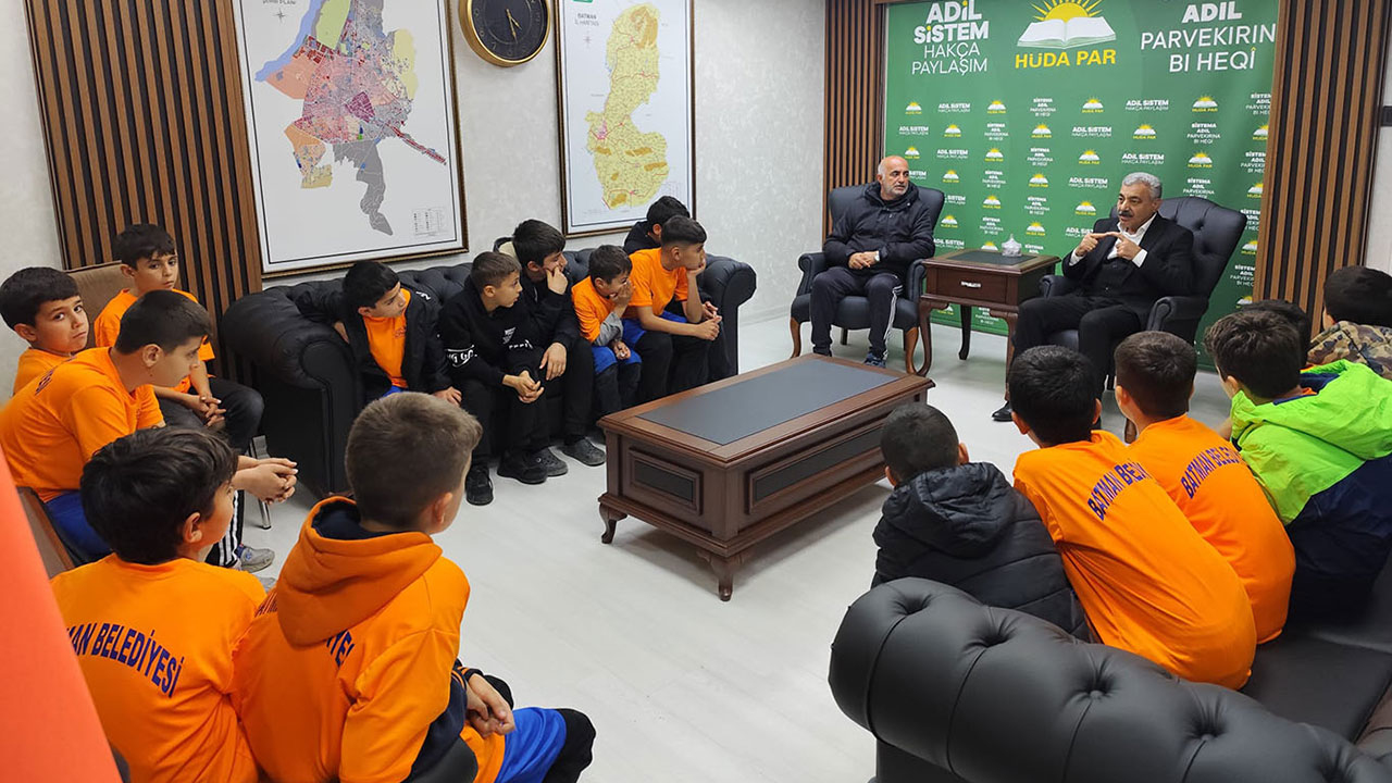 Batman Beşevler Mahallesi U14 Genç Futbol Takımı, 16 kişilik sporcu kadrosu ve teknik direktör İbrahim Ekinci ile birlikte HÜDA PAR Batman İl Başkanlığı'nı ziyaret etti.