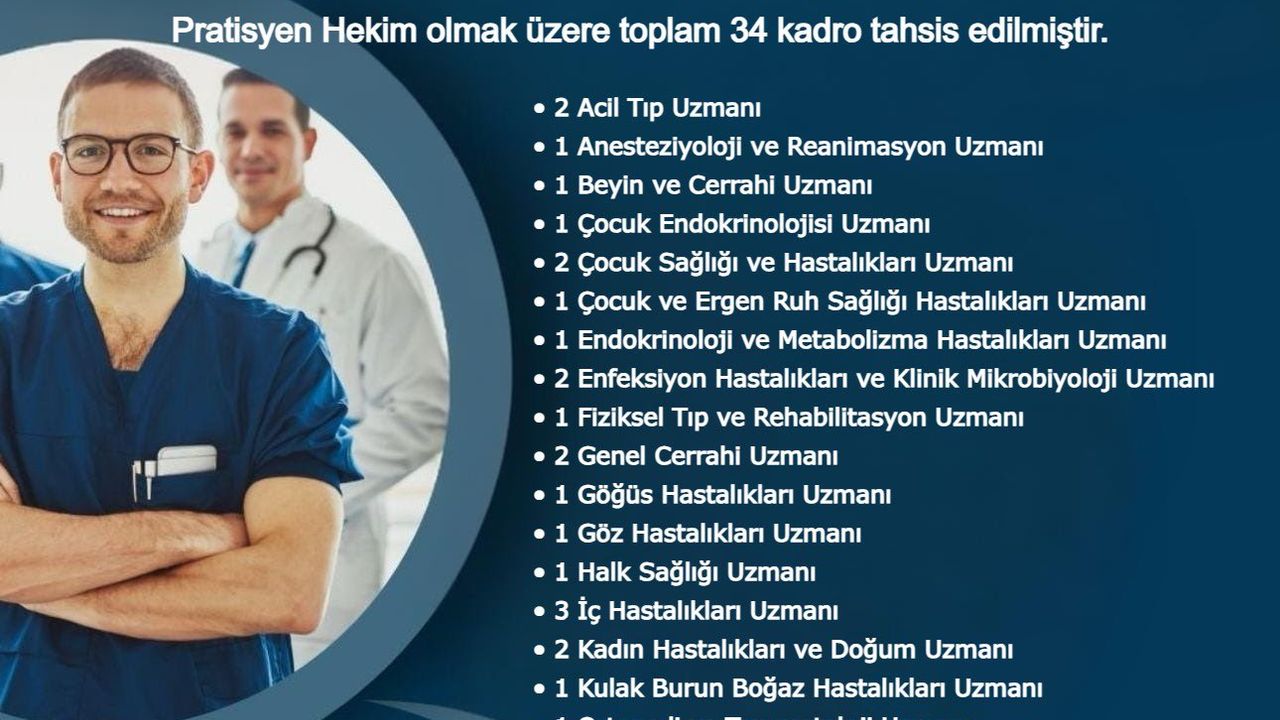 Yeni kadrolar arasında 2 yan dal uzmanı (Çocuk Endokrinolojisi, Endokrinoloji ve Metabolizma Hastalıkları), 25 uzman hekim ve 7 pratisyen hekim yer alıyor.