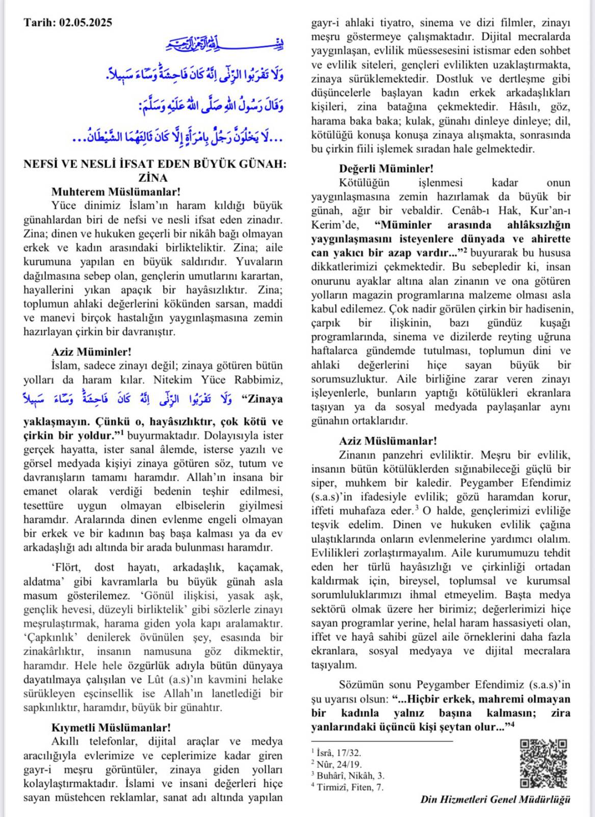 Diyanet’in, dinin emrini tebliğ etmekten başka bir şey yapmadığı bu hutbenin hedef alınması, İslam’a ve dini değerlere karşı sürdürülen sistemli bir kampanyanın parçası olarak değerlendiriliyor.