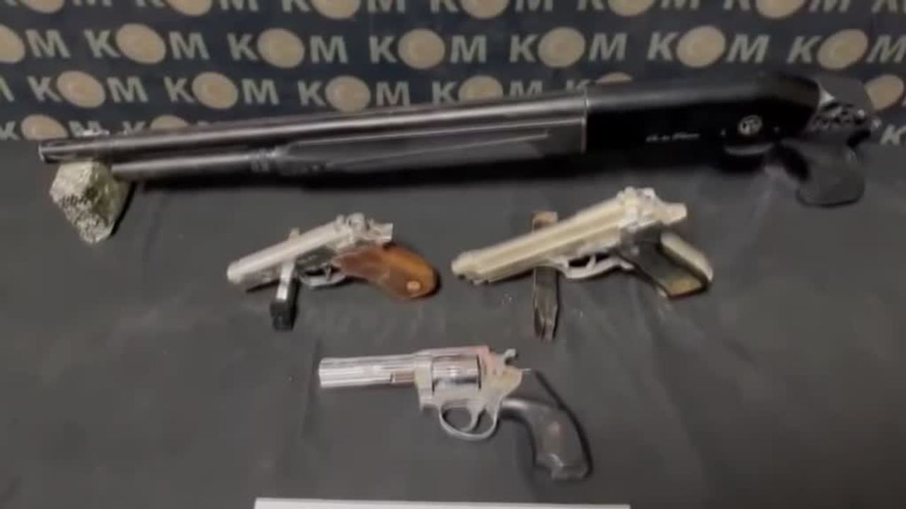 Şüphelilerin adreslerinde yapılan aramalarda ise kurusıkıdan çevrilmiş namlusu açık tabanca, 2 kurusıkı tabanca, 2 şarjör, pompalı tüfek ve 6 gram esrar bulundu.