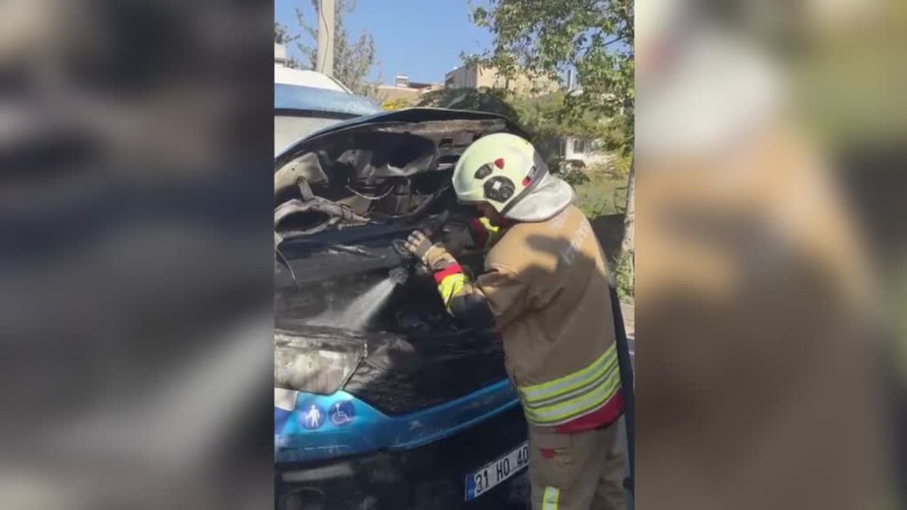 Kocatepe Mahallesi'nde H.K. idaresindeki 31 HO 4010 plakalı minibüsün motor bölümü henüz belirlenemeyen bir nedenle alev aldı.