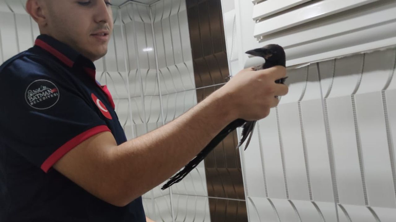 Sağlık Mahallesi'nde bir binanın havalandırma boşluğunda mahsur kalan kargayı fark eden vatandaşlar, durumu ilgililere bildirdi.