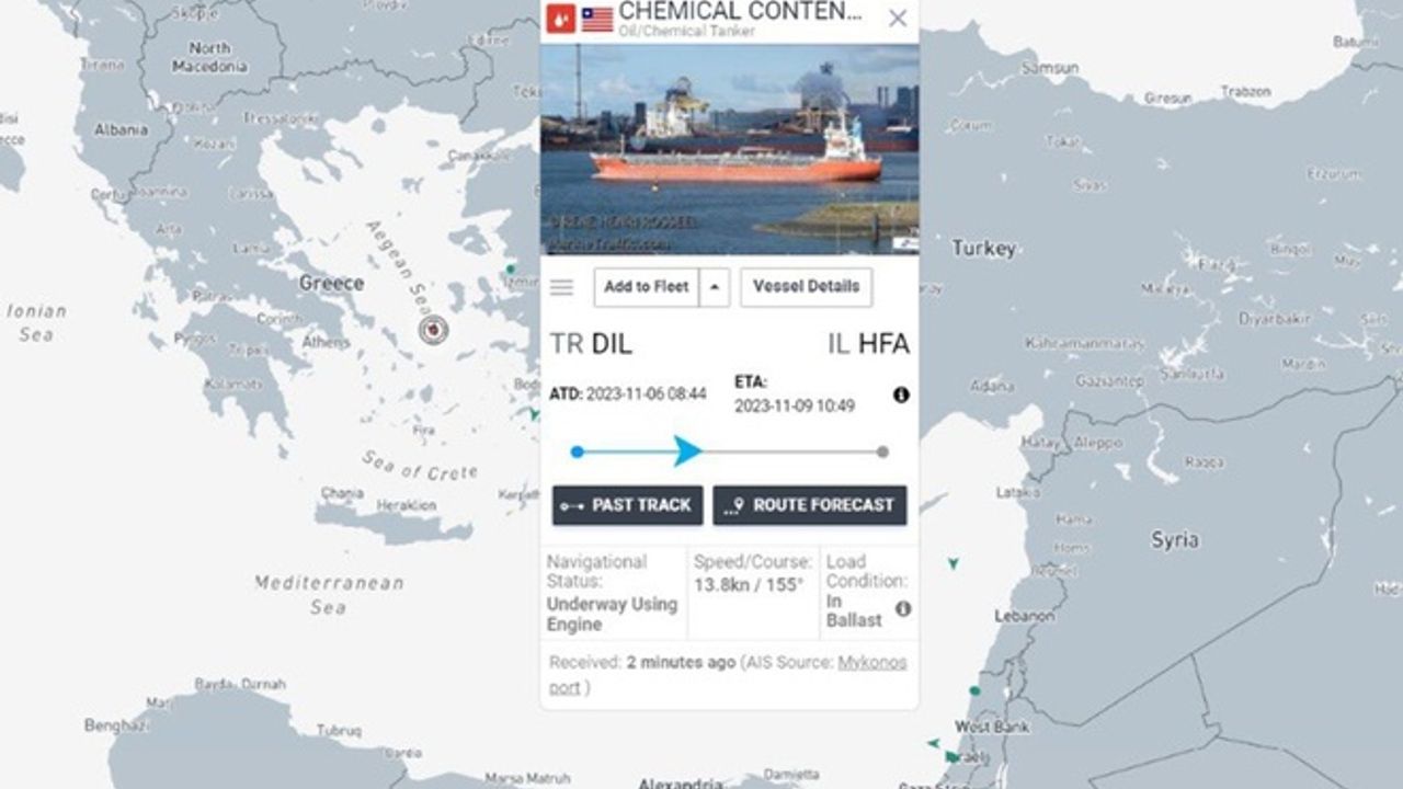 Sosyal medya hesabından açıklama yapan Dinç, yakıt ve kimyasal madde taşıyan ''Chemıcal Contender'' isimli yük gemisinin, Kocaeli Çolakoğlu (Diliskelesi) Limanı'ndan dün 08:44 saati itibari ile kalktığını ve 09 Kasım saat 10:49'da işgal rejimindeki Hayfa Limanı'na varmasının beklendiğini belirtti.