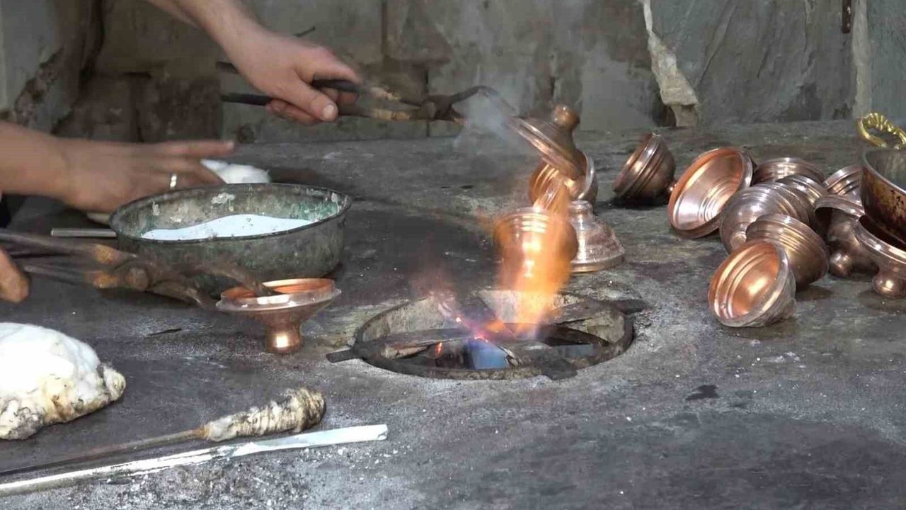 Babalarından miras kalan ocakta, zamanın aşındıramadığı el emeğiyle bakır mutfak eşyalarını bin bir emek ve zahmetle kalaylayan kardeşler, baba mesleğini yaşatmaya çalışıyor.