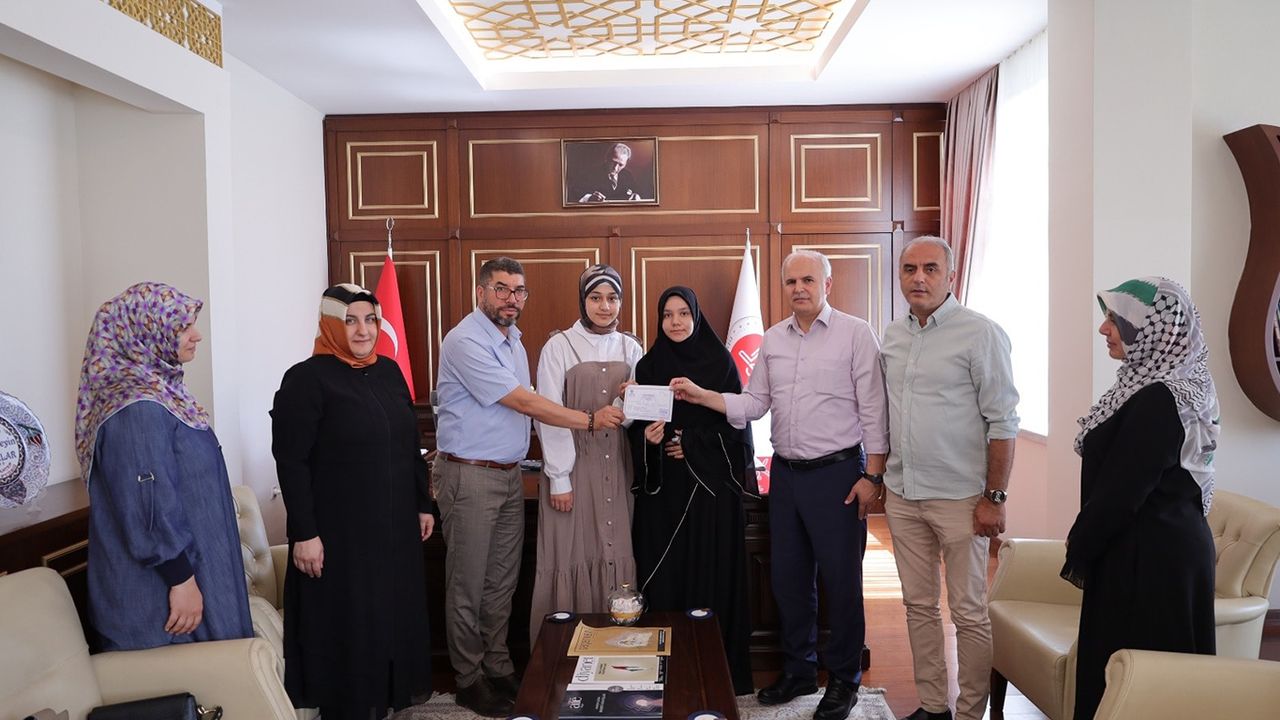 Şahinbey Belediyesi Mehmet Emin Er Kız Anadolu İmam Hatip Lisesi öğrencileri, Gazze düzenledikleri kermesten elde ettikleri geliri "Filistinli Kardeşlerimizin Yanındayız" kampanyasına destek için bağışladılar.