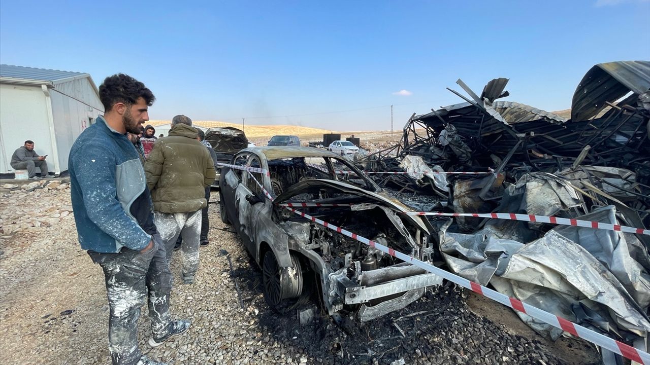 İtfaiye ekiplerinin müdahalesiyle söndürülen yangında araçlarda hasar oluştu.