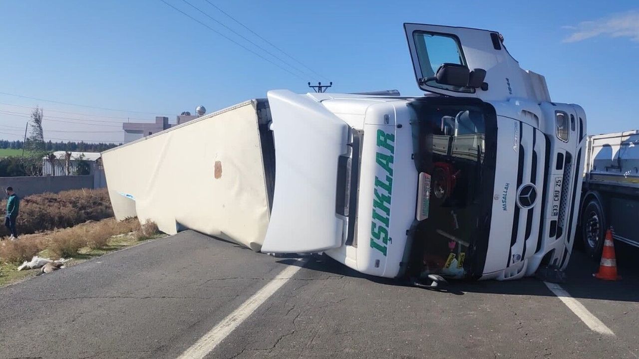 Edinilen bilgiye göre, 33 CRU 25 plakalı tırın şoförü M.Ş.A, yüklediği peyniri Irak’a götürmek üzere yola çıktı. Ancak seyir halindeyken direksiyon hakimiyetini kaybetmesi sonucu tır, devrildi.