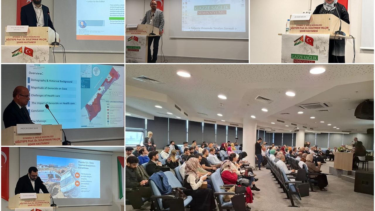 Sempozyumun ilk oturumunda konuşan Türkiye-Filistin Dostluk Hastanesi Başhekimi Prof. Dr. Sobhi Skaik, "Gazze satılık değildir. Gazze'yi terk etmeyeceğiz, yeniden inşa edeceğiz. Gazze'ye atılan bombaların Hiroşima'ya atılan atom bombasının 6 katı kadar. 38 hastaneden 37'si doğrudan hedef alındı. Şifa Hastanesi'nin bulunduğu alana 4 toplu mezar kazıldı. Gıda ve ilaç yetersizliğinin yanı sıra, malnütrisyon ve tanı konulamayan binlerce kanser vakası var. Bu bir savaş değil, sistematik bir yok etme sürecidir." diye konuştu.