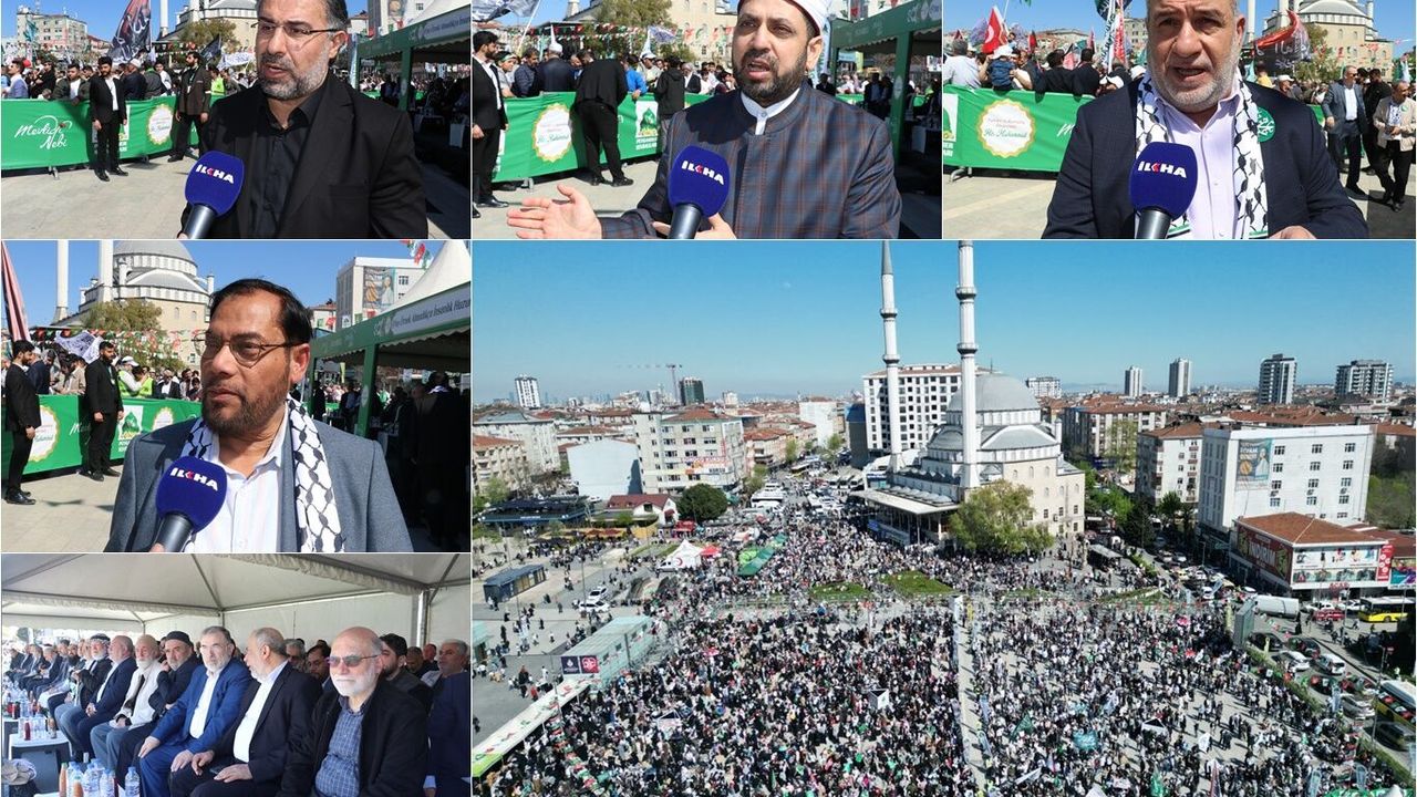 "Bugün, Peygamber Efendimizin (Sallallahu Aleyhi ve Sellem) mevlidi vesilesiyle düzenlenen bu etkinlikteyiz. Bu öyle yüce bir hatıradır ki Türkiye halkı Peygamber Efendimizi (Sallallahu Aleyhi ve Sellem) daima zikirle anmak için bugünü hem Hicri hem de Miladi takvime göre kutlayarak bu konuda ayrıcalıklı bir yere sahip olmuştur. Gerçekten muazzam ve devasa bir organizasyon. Meydanları dolduran bu kalabalık, Peygamber sevgisinin tüm Türkiye halkının kalbinde ne kadar derin köklere sahip olduğunun mesajını veriyor. Bu duyguyu yok etmeye ya da azaltmaya yönelik tüm çabalar boşa çıkmış, bu tablo tüm dünyaya Peygamber Efendimizin (Sallallahu Aleyhi ve Sellem) Türkiyelileri, Müslümanların ve Peygamberini seven her insanın kalbindeki sarsılmaz makamını göstermiştir. Resulullah’ı anmak, O’nun sünnetine sarılmakla, O’nu savunmakla, Müslümanları savunmakla, İslam topraklarını ve Müslümanların mukaddesatını her yerde korumakla olur. Allah Teâlâ’dan Türkiye ve tüm İslam beldeleri için hayırlar yazmasını, Mescid-i Aksa’yı ve işgal altındaki tüm İslam topraklarını özgürlüğüne kavuşturmasını niyaz ediyoruz."