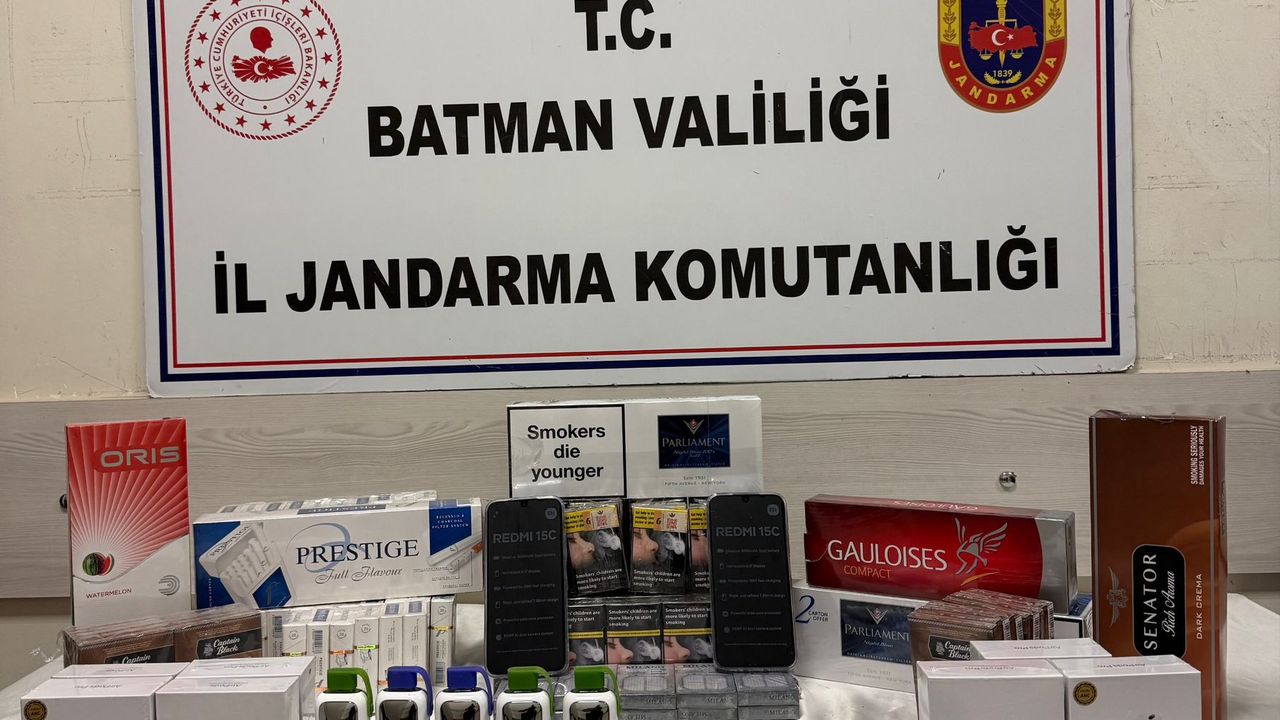 Aramalarda, gümrük kaçağı 2 cep telefonu, 7 kablosuz kulaklık, 9 elektronik sigara ve 3 bin 7 paket sigara ele geçirildi.