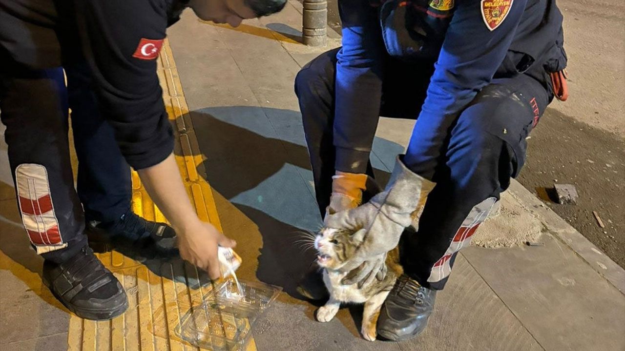 Haber verilmesi üzerine olay yerine gelen Kilis Belediyesi İtfaiye ekipleri, kediyi mahsur kaldığı yerden kurtardı.