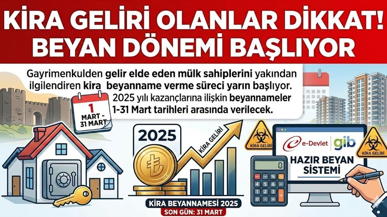 Bu kapsamda, 2025 yılında konuttan yıllık en az 47 bin lira kira geliri elde eden gayrimenkul sahipleri gelir vergisi ödeyecek. İstisna tutarının altında kira geliri elde edenler ise beyanname vermeyecek. Beyannamelerin 1-31 Mart tarihleri arasında verilmesi gerekiyor.