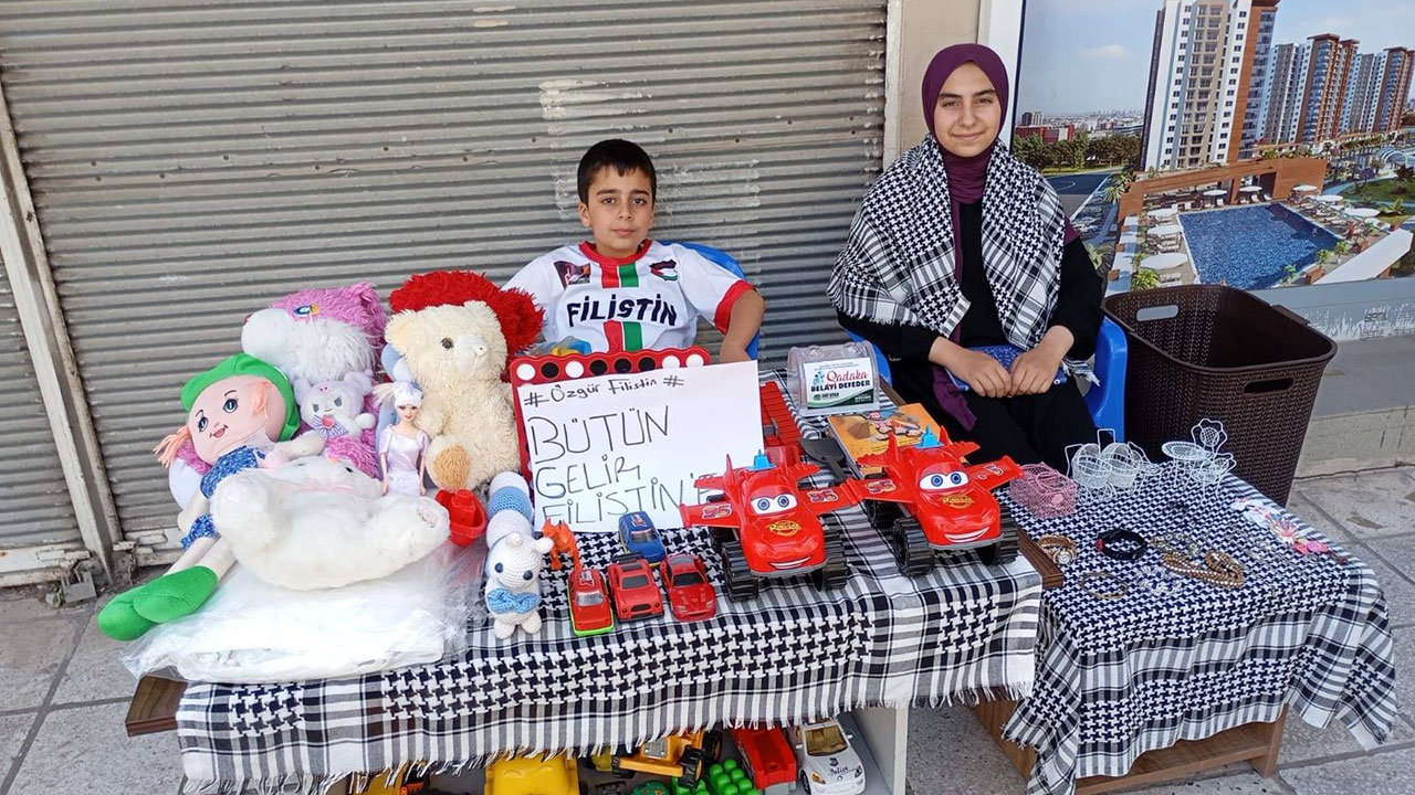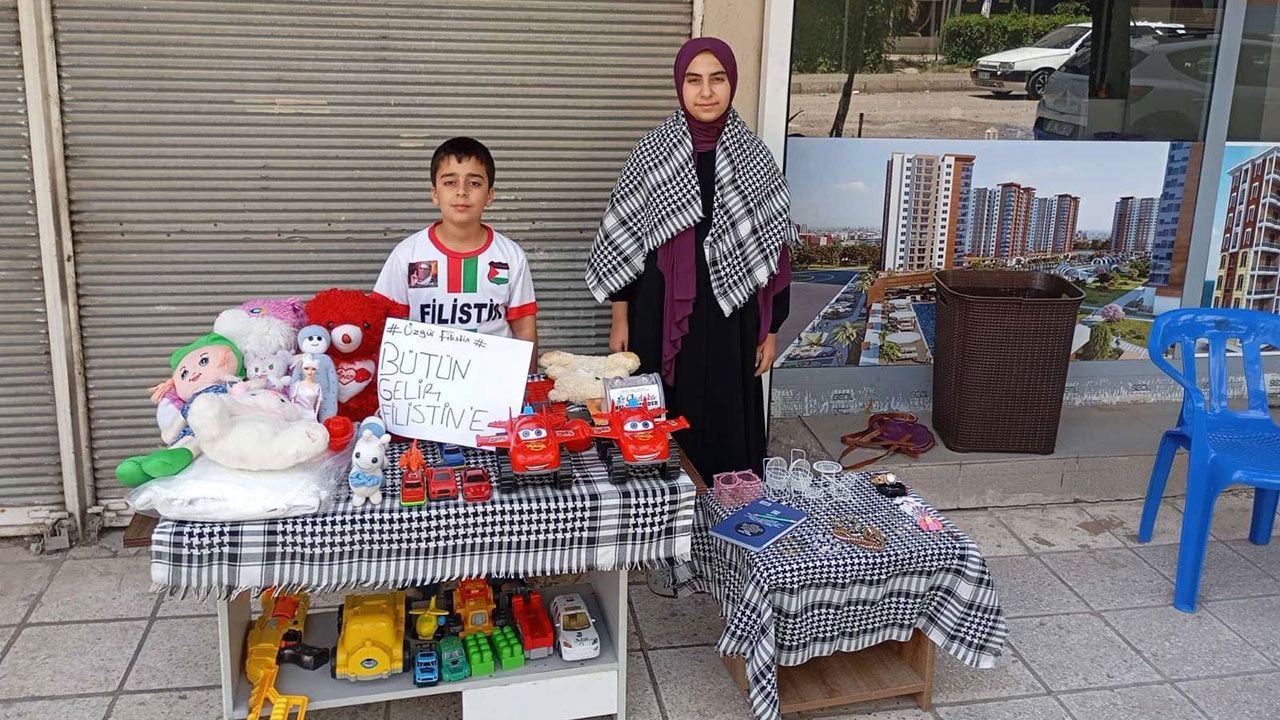 Açtığı stantta en sevdiği oyuncaklarını satışa çıkaran Yılmaz kardeşler, satışlardan elde edeceği geliri Umut Kervanı aracılığıyla Gazze'ye bağışlamayı hedefliyor.