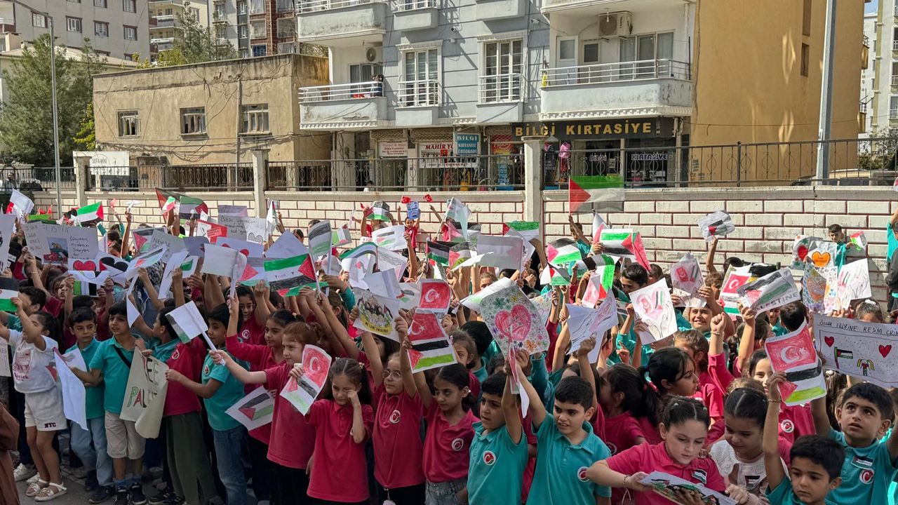 Kılıç, 'Öğrencilerimizle Filistin halkının yanında olduğumuzu göstermek istedik. Gazze'de yaşanan olaylar hepimizi derinden üzüyor. Çocuklarımızın küçük yaşta insanlık değerlerini, barışı ve kardeşliği öğrenmelerini arzuluyoruz. Onların çizdikleri resimlerle Filistinli çocuklara umut ve dayanışma mesajı verdik.' dedi.