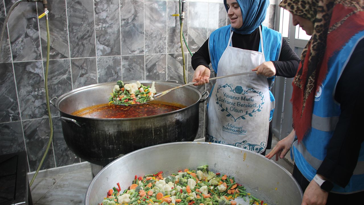Allah için çalışmalara iştirak ettiklerini dile getiren Nafide Karakurt, "Burada yapılan çalışmaya katılıyoruz, yemek yapıyoruz. Her Ramazan iftar yemeği pişiyoruz. Çeşit çeşit yemek çıkarıyoruz. İnsanların yaptıkları hayra bizde ortak olup elimizden geldiği kadar burada sadece Allah rızası için çalışıyoruz." dedi.