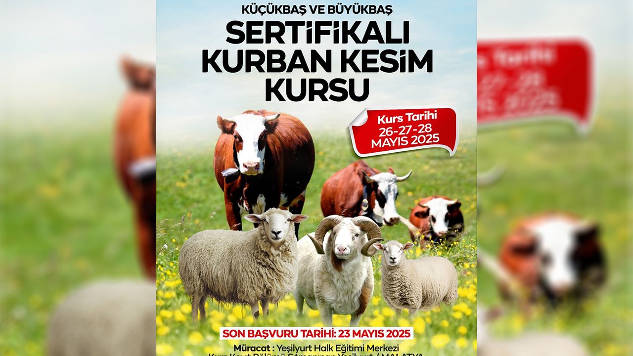 Kurban Kesim Kursuna katılacak vatandaşlar için son başvuru tarihi 23 Mayıs Cuma günü olup, kayıtlar ise Yeşilyurt Halk Eğitim Merkezi Kurs Kayıt Bölümünden alınacak. Kursa katılım sağlamak isteyen vatandaşların 0422 213 02 18 iletişim numarasından detaylı olarak bilgilendirilecekler.