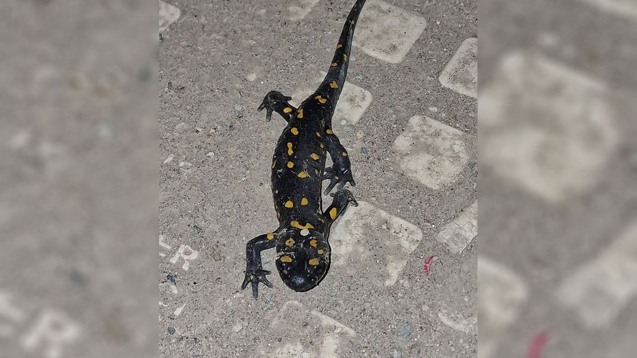 Yeşilyurt ilçesi İlyas Mahallesi'nde ikamet eden kız kardeşinin evine misafirliğe giden Muharrem Özmen adlı vatandaş, Yeni Yol Caddesi üzerinde tanımadığı bir hayvan türüne rastladı. Cep telefonuyla hayvanı görüntüleyen Özmen, araştırma yaptıktan sonra gördüğü hayvanın ateş semenderi olduğunu öğrendiğini söyledi.