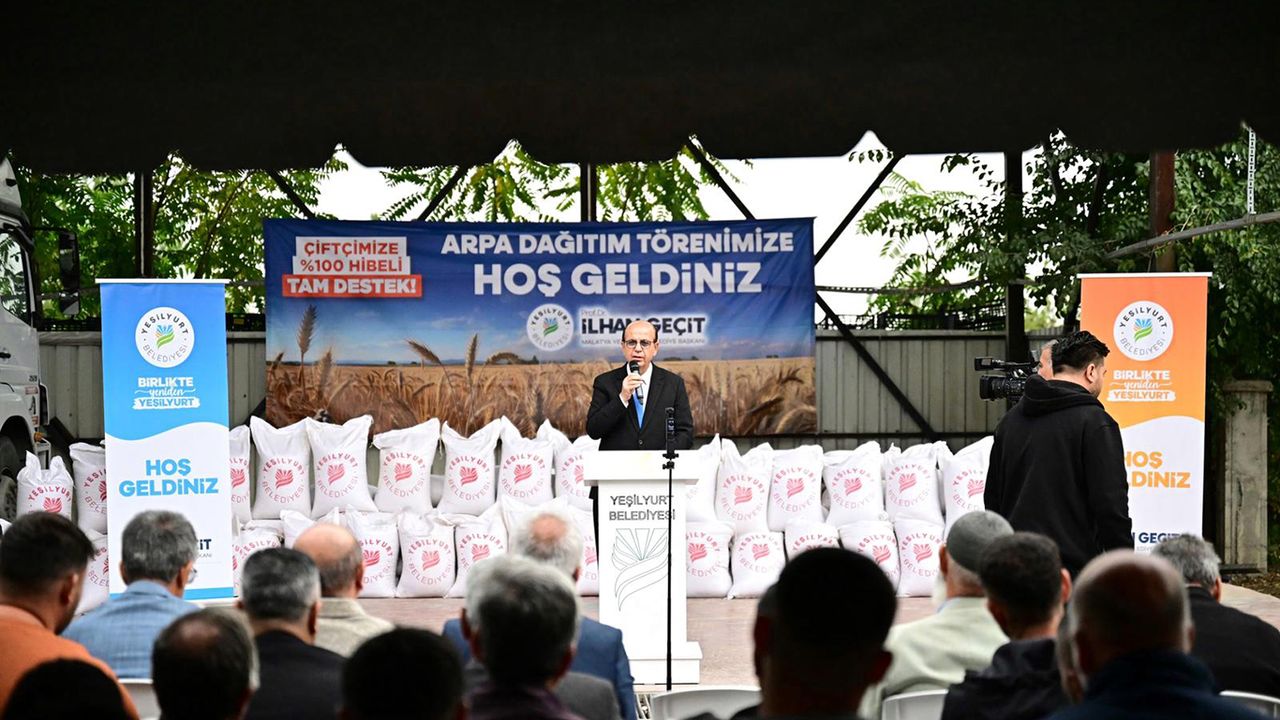 Yeşilyurt Belediye Başkanı Prof. Dr. İlhan Geçit ise, tarımsal üretimde verimliliği artırmak ve üreticilerin maliyet yükünü hafifletmek amacıyla başlattıkları tarımsal destekleri 50 ton arpa desteğiyle taçlandırdıklarını söyledi.