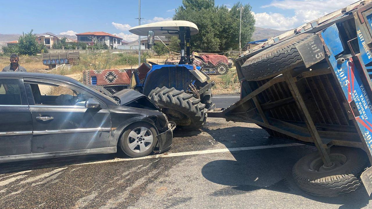 Doğanşehir ilçesinde seyir halindeki otomobil, önünde ilerleyen traktörün römorkuna çarptı.
