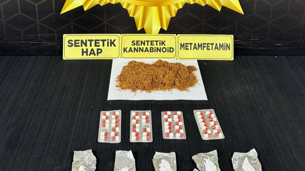 Gerçekleştirilen aramalarda 623 gram sentetik kannabinoid, 156 adet sentetik ecza hap, 7 gram sentetik kannabinoid hammaddesi, 25 gram metamfetamin maddesi ile 1 adet ruhsatsız tüfek ele geçirildi.