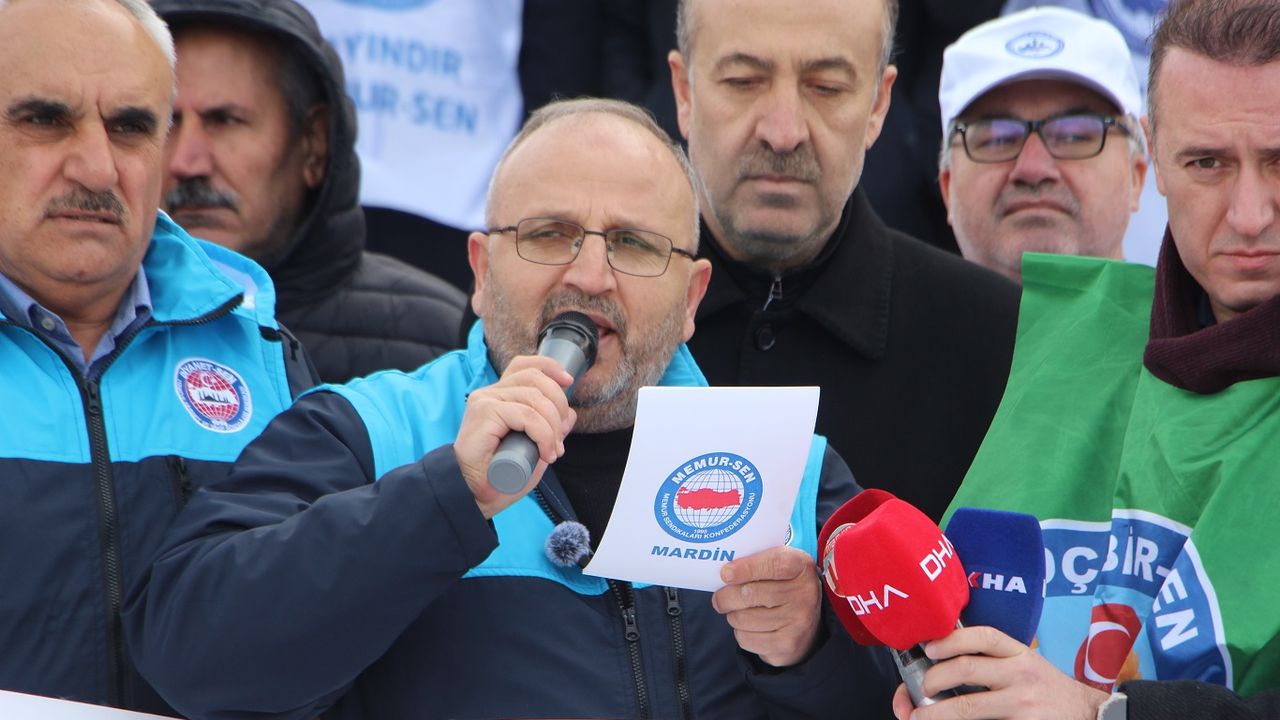 Memur-Sen Mardin İl Temsilciliği, 2026 yılının memurlar için ilk maaş gününde tüm bağlı sendikaların katılımıyla 15 Temmuz Parkı Meydanı'nda basın açıklaması düzenledi. Sendikalar adına basın açıklamasını Memur-Sen Mardin İl Temsilcisi Abdüsselam Demir okudu.