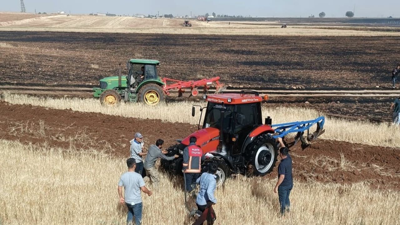 Traktörlerle tarlaların etrafını süren çiftçiler, yangının diğer alanlara sıçramasını önlemeye çalıştı.