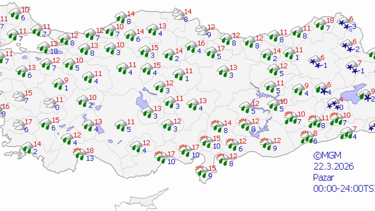 Bugün için beklenen toplam yağış miktarı 22,7 mm olarak açıklanırken, pazartesi, salı, çarşamba, perşembe, cuma ve cumartesi günlerinde de yağışın etkili olacağı bildirildi. Gündüz ve gece sıcaklık farkının en fazla olacağı günün ise çarşamba (11°C / 5°C) olması bekleniyor.