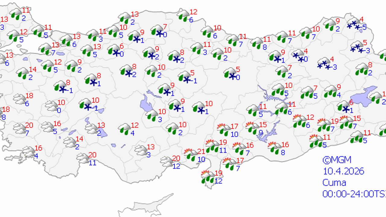 Akşam saatlerinde aralıklı yağışlar devam ederken sıcaklık 11°C, gece saatlerinde ise 8°C civarında seyredecek.